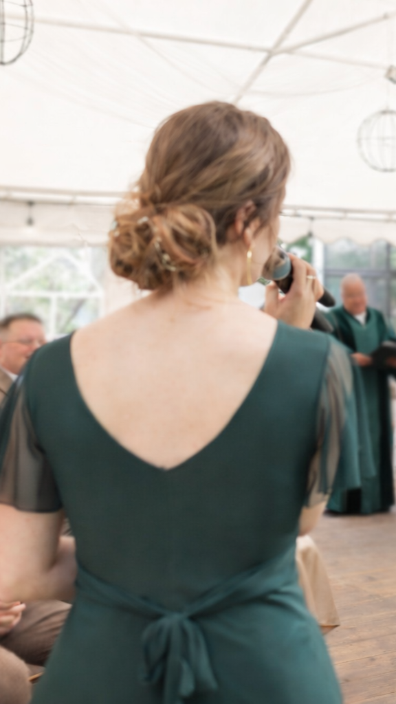Ook op andere momenten van deze mooie dag kan livemuziek nét dat beetje extra geven. Denk aan sfeervolle achtergrondmuziek tijdens de borrel of het diner – of allebei! Een warme, muzikale omlijsting die de gesprekken op gang brengt en de sfeer intiem en ontspannen maakt. Maar ook bij het ontvangst van jullie gasten – wanneer de eerste spanning voelbaar is en de dag nog moet beginnen – kan een zacht gezongen lied de toon zetten en zorgen voor een warm welkom. En wat denken jullie van een live gezongen openingsdans! Een nummer dat speciaal voor jullie gezongen wordt, maakt dat moment nóg specialer.